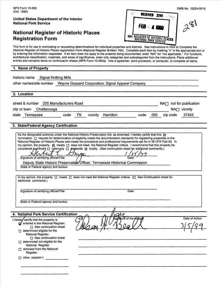 Chattanooga ; 205 Manufacturers Rd.