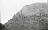 BW photo of the 1937 grazing study 35MM. Photo of ranger on hillside. ; ZION Museum and Archives Image 105_07_01025 ; ZION 15933