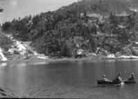 These men were trolling in a collapsible boat. When asked to pose next fish caught, they said they would catch one in 20 connts. At 14 strokes of the oars one fellow caught one and the other caught his on 18.