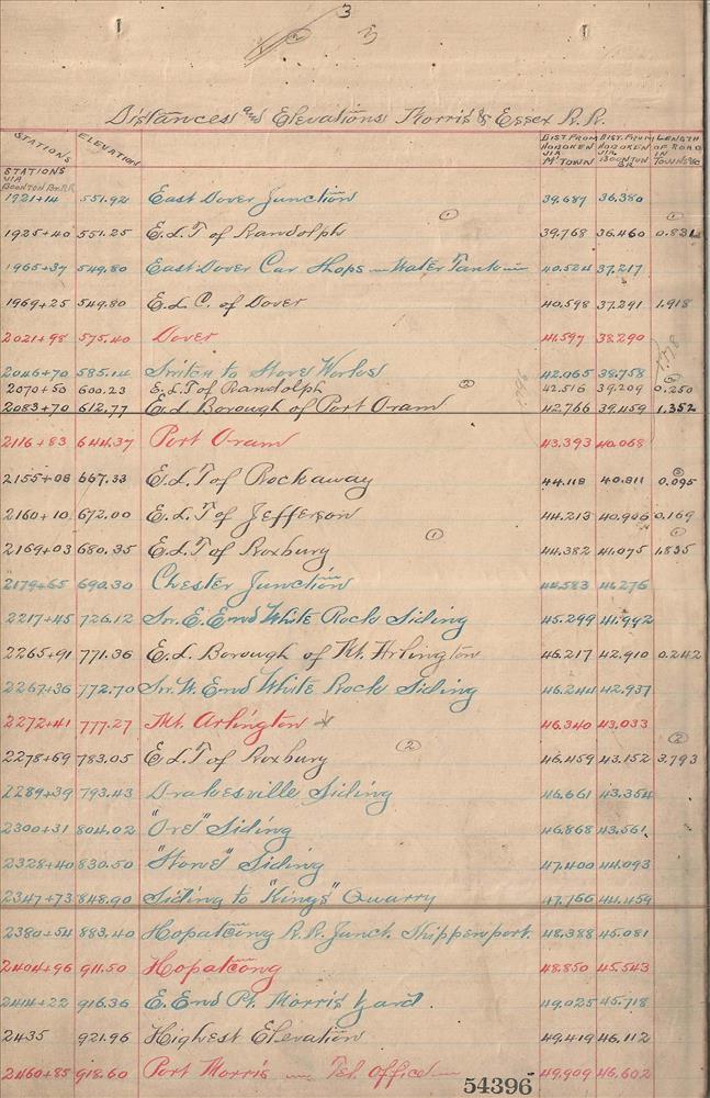 54396.PB#001--Distances and elevations--Morris and Essex Railroad and branches [1898.01.01] [GROUP 1]