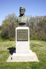The pink & gray granite monument consists of a 44" square, tapered base supporting a rectangular pedestal for a total height of 72". A 36" x 24" x 52" bronze bust rests on top. A bronze plaque is attached to the pedestal.