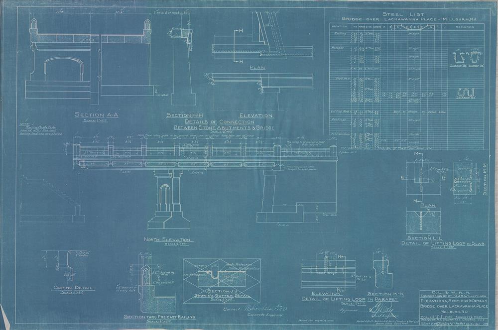 Bridge over Lackawanna Place--Elevations, sections and details--Millburn, NJ [1923.04] Sheet no. 2 of 5