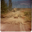Vehicles driving on road during chipsealing of Zion roads. ; ZION Museum and Archives Image 002.12.05-10of23 ; ZION 15933