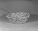 Marie Rozier Collection, Catalog No. 127. Object: Northwest Coast basket. Dimensions: 8 x 8 1/2". Materials: Red cedar root, beargrass. Technology: Plain twined, up to right slant of turns. Collection History: Purchased in Yellowstone in 1928 by Mary Long.