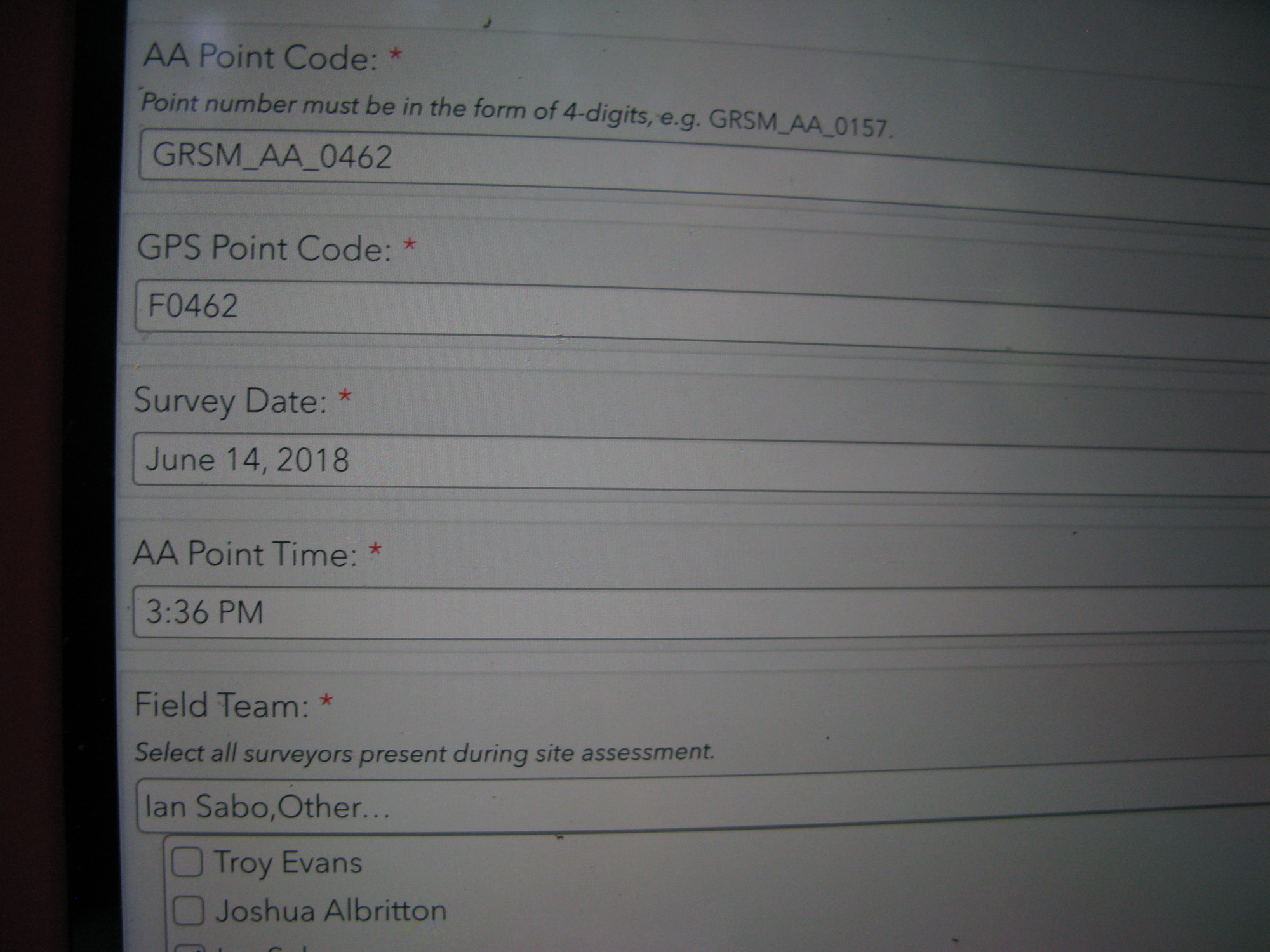 GRSM Accuracy Assessment. Plot Code: GRSM_AA_0462_1