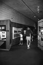 Visitors viewing the interpretive displays in the old Mission 66 Visitor Center and Museum. ; ZION Museum and Archives Image 004.01.03-2of24 ; ZION 15933
