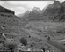 Location of right-of-way for new Highway 1 (State Route 9) from South Entrance to Virgin River Bridge. ; ZION Museum and Archives Image 002_10011 ; ZION 7515