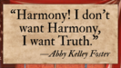"Harmony! I don't want Harmony, I want Truth" -- Quote by Abby Kelley Foster