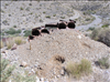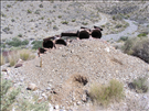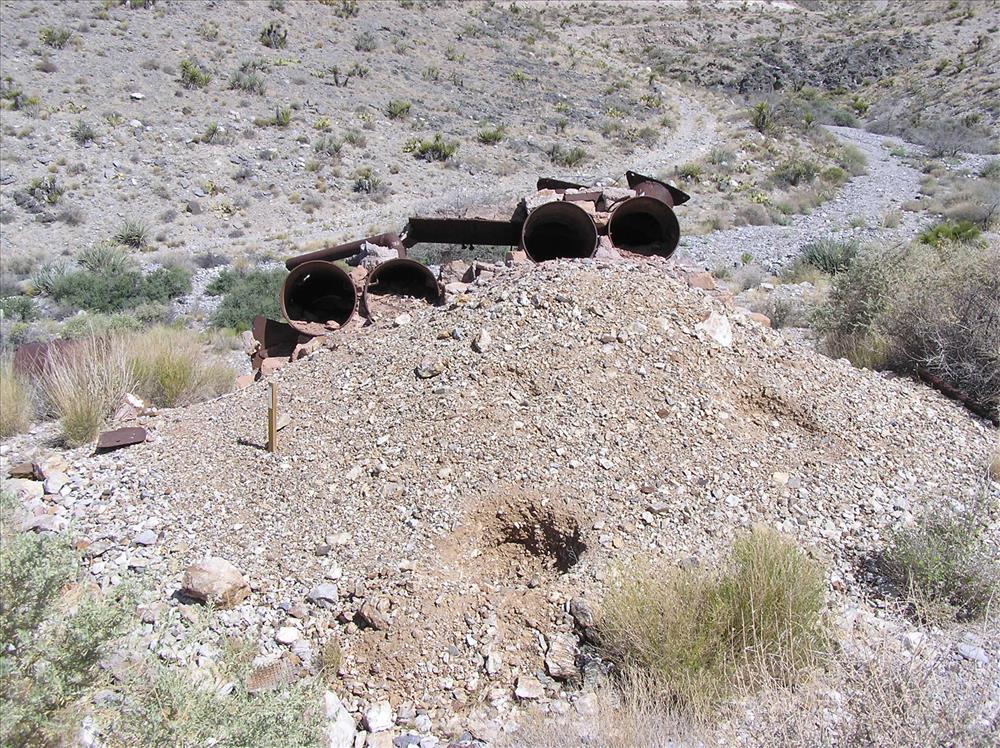 Contaminated tailings above wash at Copper Glint Mill, an abandoned ore processing mill on Mojave National Preserve. Copper Glint Mill is located about 2 miles north of Interstate 15 (I-15) near Mountain Pass, CA. The site has concentrations of heavy metals above human health and ecological risk levels.