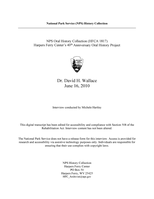Transcript of an oral history interview with Dr. David Wallace from the museum program at Harpers Ferry Center.