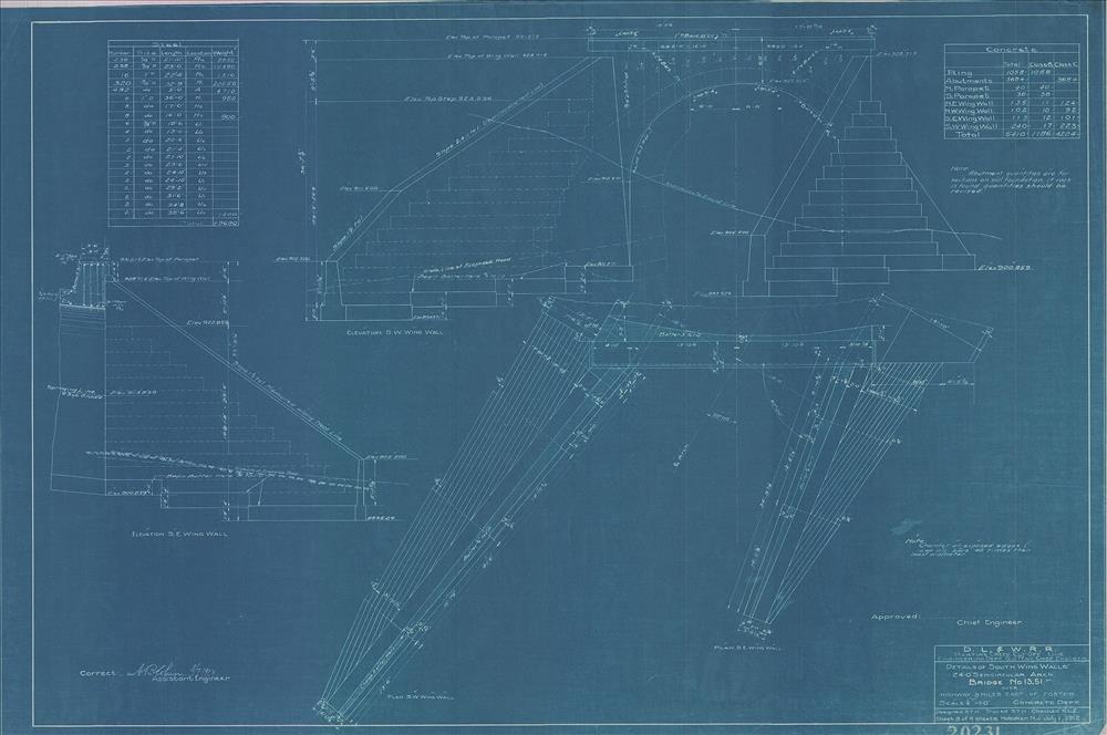 24-foot semicircular arch bridge no.13.51 over highway--Details of south wing walls--3 miles east of Foster, PA [1912.07.01] Sheet no. 3 of 4