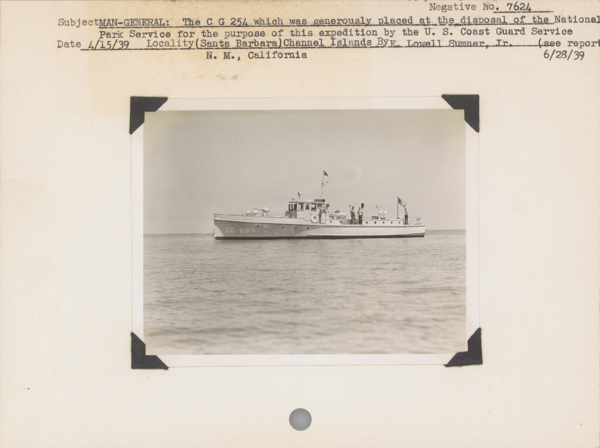 Man--General--The C G 254 which was generously placed at the disposal of the National Park Service for the purpose of this expedition by the U.S. Coast Guard Service. Locality: Channel Islands National Monument, Santa Barbara, California [Channel Islands National Park]. Negative #: 7624