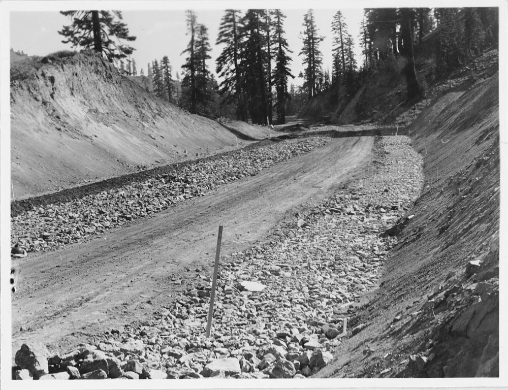Administrative Collections: Album 2-Resurfacing and gutter work on Lassen Park Road including surface scarification, laying of rock undersurface, grading, and oiling.