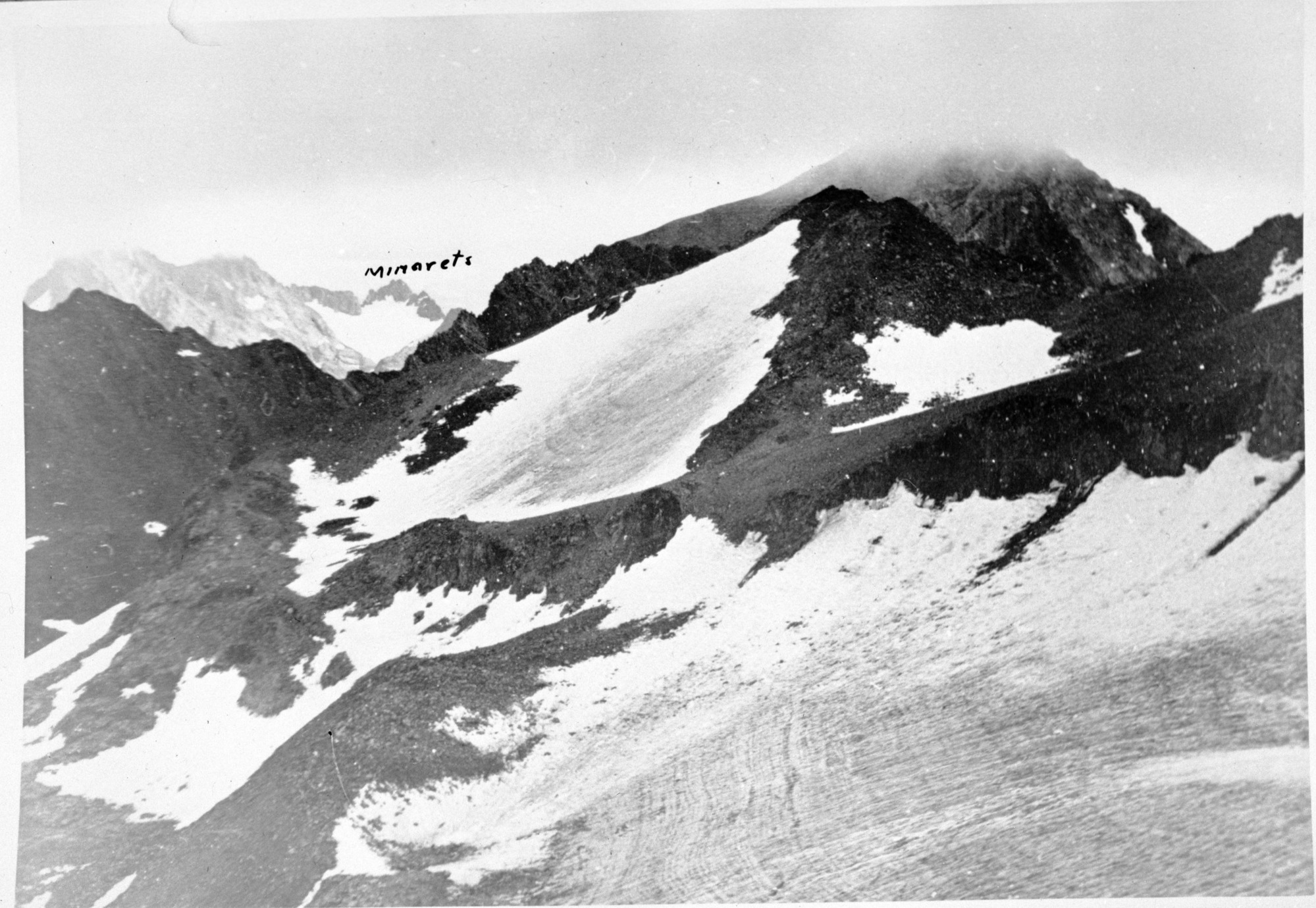 Minarets from the east side of the Sierra. Copied April 5, 1984 by Michael Dixon. Original 5 x 7 nitrate negative destroyed.