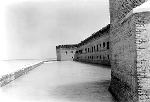 Face of fort (Fort Jefferson), showing a bastion, the moat wall, and moat. Dry Tortugas National Park (formerly Fort Jefferson National Monument).