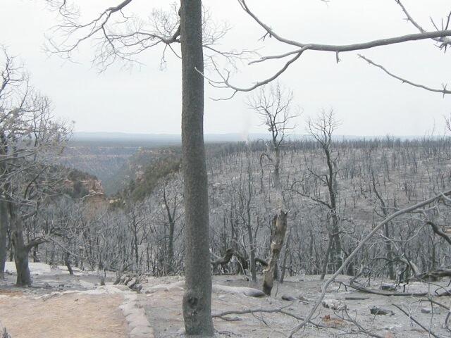 Forest burn areas depicted in surface photos in the aftermath of the Long Mesa Fire, Mesa Verde National Park, August 2002