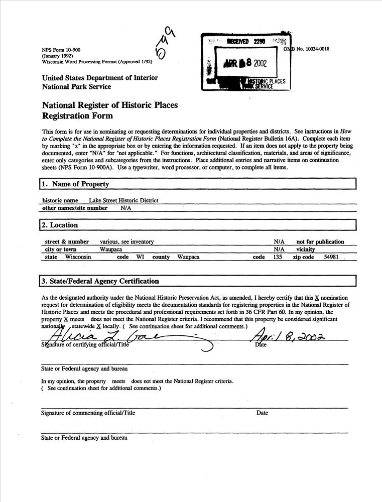 Waupaca ; Roughly bounded S. Washington St., E. Badger St., Fifth St., and Tioga St.