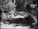 Dirt road from Potato Hollow to Kolob Creek with a small green fir tree uprooted and pushed off road. ; ZION Museum and Archives Image 101_02_003 ; ZION 8291