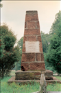 12'h red sandstone square-shafted obelisk w/ mortar, 2-tiered base, very similar to Henry Hill Monument; surrounded by 4 field artillery shells w/ one atop, and split-rail fence; plaque, originally marble, commemorating Union dead at 2nd Manassas || Structure Number: