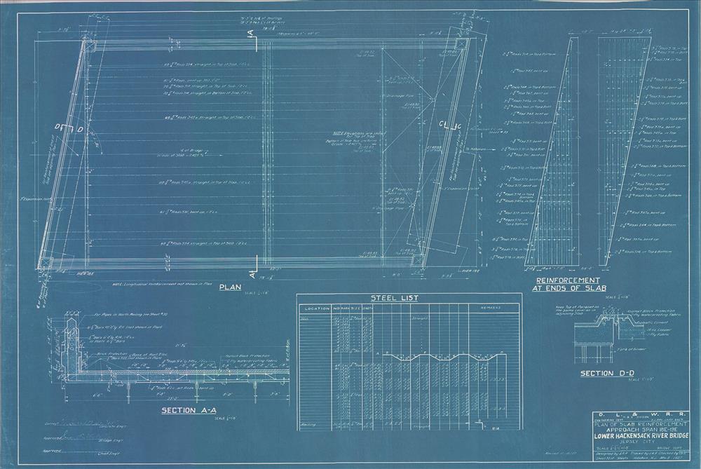 032 Lower Hackensack River Bridge--Plan of slab reinforcement--Approach span 18E--19E--3E--Jersey City, NJ [1927.11.09] Sheet no. 32-- Includes steel list