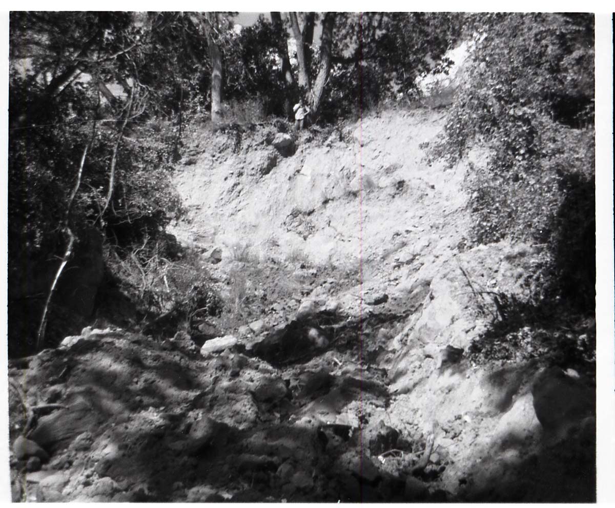 BW photo of a rock slide at the gateway to the narrows. ; ZION Museum and Archives Image 107_06_08002 ; ZION 15933