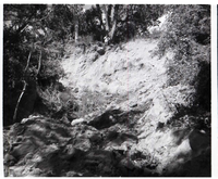 BW photo of a rock slide at the gateway to the narrows. ; ZION Museum and Archives Image 107_06_08005 ; ZION 15933