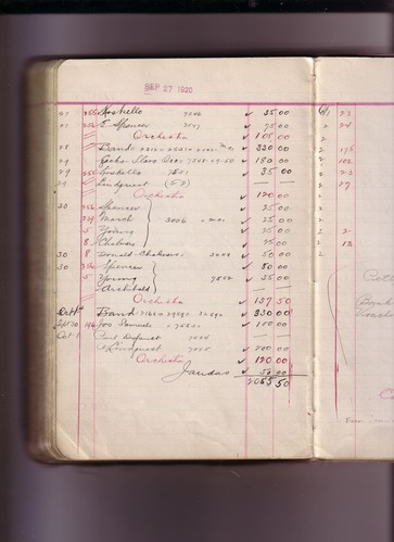 Some of the markings made in pencil in these cash books were made by ENHS Curator Leah Burt during the 1970s and/or early 1980s. For Leah Burt handwriting examples see pages for: December 19, 1921 (cash book 17) ; February 12, 1923 (cash book 17) ; October 27, 1924 (cash book 18) ; December 01, 1925 (cash book 19).