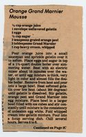 A recipe for Orange Grand Marnier Mousse. The recipe is cut from a newspaper and is part of Bess Truman's recipe collection.