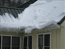 A significant snow, sleet, and ice storm (Feb 18-22, 2015) damaged and destroyed building's gutters and downspouts. This image is part of a PMIS Emergency Funding request.