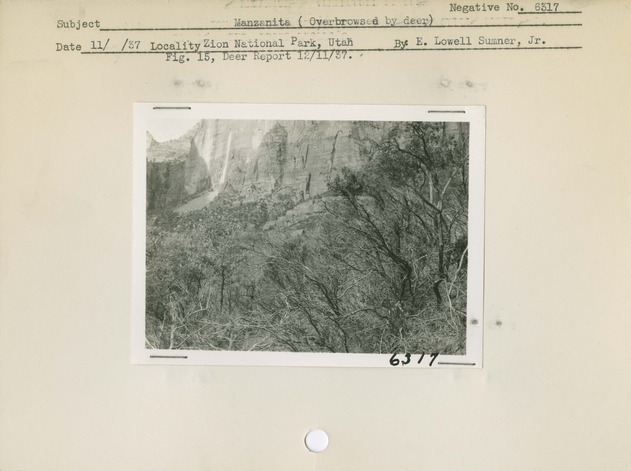 Manzanita (Overbrowsed by deer). Figure 15, Deer Report, 12/11/1937. Locality: Zion National Park, Utah. Negative #: 6317