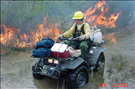 Firefighter on ATV monitoring burn along wetland