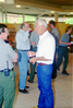 Color Photos of the opening celebration for the new visitor center - Same day as the official shuttle launch. Superintendent Donald A. Falvey speaking with visitor. ; ZION Museum and Archives Image 800_20_02034 ; ZION 15933