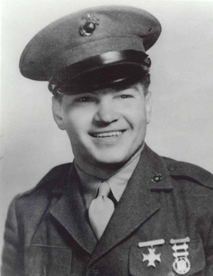 Photo date unknown. Pictured: Private First Class Frank Peter Witek, killed in action on August 3, 1944. He served with the 1st Battalion, 9th Marines, 3rd Marine Division during the Battle of Finegayen at Guam, Marianas, August 3, 1944. Witek was posthumously awarded the Medal of Honor for his heroism and sacrifice during World War II. Description: When his rifle platoon was halted by heavy surprise fire from well-camouflaged enemy positions, PFC Witek daringly remained standing to fire a full magazine from his automatic weapon at point-blank range into a depression housing Japanese troops, killing 8 of the enemy soldiers and enabling the greater part of his platoon to take cover. During his platoon's withdrawal for consolidation of lines, he remained to safeguard a severely wounded comrade, courageously returning the enemy's fire until the arrival of stretcher bearers and continued covering the evacuation by sustained fire as he moved backward toward his own lines. With his platoon again pinned down by a hostile machine gun, PFC Witek, on his own initiative, moved forward boldly to the reinforcing tanks and infantry, alternately throwing handgrenades and firing as he advanced to within 5-to-10 yards of the enemy position and destroying the hostile machine gun emplacement and another 8 enemy soldiers before he was struck down by an enemy rifleman. His valiant and inspiring action effectively reduced the enemy's firepower, thereby enabling his platoon to attain its objective.