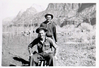 Two Civilian Conservation Corps (CCC) men riding in wheel barrow near the South Entrance. ; ZION Museum and Archives Image 402_05_04002 ; ZION 15933