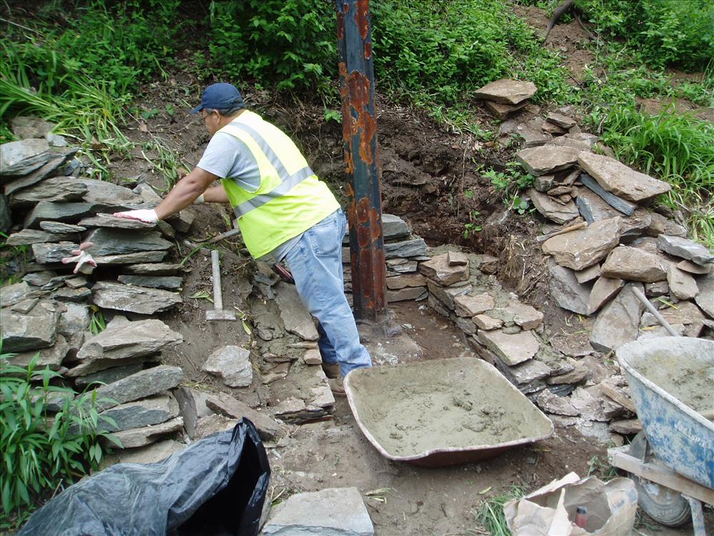 Stone walls around lights undergoing repair on S. Waterside Drive - 04-26 to 05-03-07