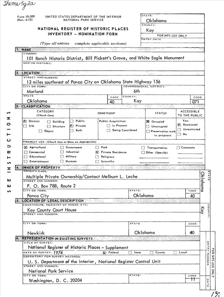 Ponca City ; 12 mi. SW of Ponca City on OK 156