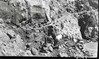 Narrows Trail construction- view of cement and rubble masonry wall at station 30-60. Five workers are drilling with a draft horse. ; ZION Museum and Archives Image 008_03_036 ; ZION 13573