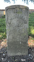 Front of historic upright marble headstone with recessed shield face.