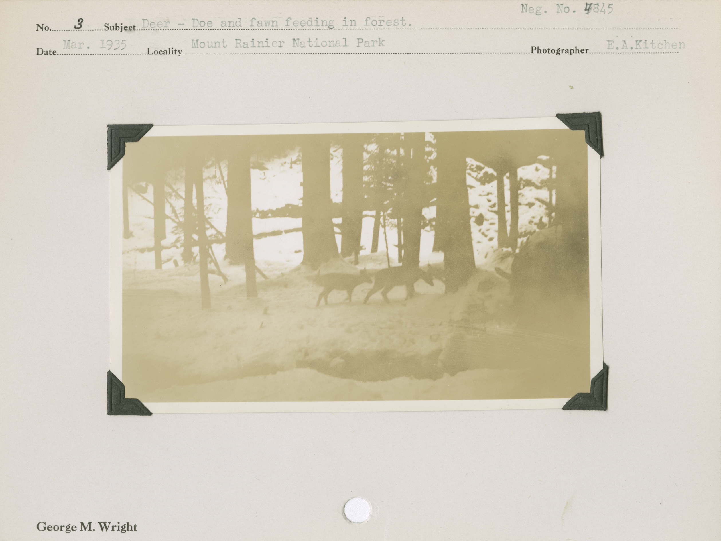 Deer – Doe and Fawn feeding in forest. Locality: Mount Rainier National Park. Negative: 4845.