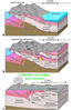 Figure 7A–C. Schematic graphics illustrating the evolution of the Cowpens National Battlefield landscape, continued. Three graphics depict three periods and events in geologic time that gave rise to the rocks and landforms at the park today. Caption follows.