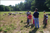 Junior Ranger families observe young turkeys, farm equipment, and the hen house at Goatfeathers Point. They also learn about farm animal care and make a turkey caller. These activities are part of the Goats & Gobblers program for children ages 7-12. The rangers are Margaret Adams and Cindy Porter. The farmer is Terry Smith. || CVNP offers a variety of Junior Ranger programs to families and groups during the summer, and a limited menu to families throughout the year. In 2007 we had a Parks as Classrooms grant to develop pilot programs on working farms on park property. This program, Goats & Gobblers, explores what a farmer does to care for goats and turkeys on his farm.