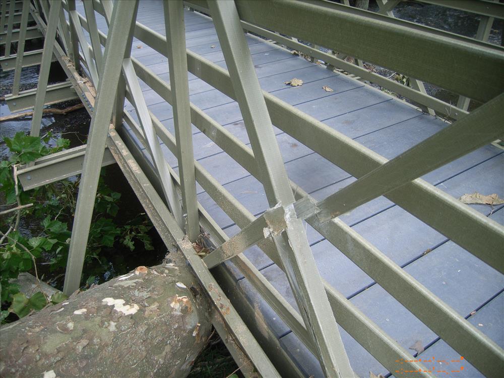Damage to the Hornbecks McDade Trail Bridge caused by Hurricane Irene August 2011