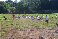 Junior Ranger families visit with and try to catch the goats at Goatfeathers Point. This kid vs. kid activity is part of the Goats & Gobblers program for children ages 7-12. || CVNP offers a variety of Junior Ranger programs to families and groups during the summer, and a limited menu to families throughout the year. In 2007 we had a Parks as Classrooms grant to develop pilot programs on working farms on park property. This program, Goats & Gobblers, explores what a farmer does to care for goats and turkeys on his farm.