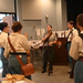 Union soldiers and staff member holding muskets.