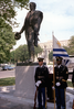 Statue of Jose Artigas with military from Uruguay one holds a flag