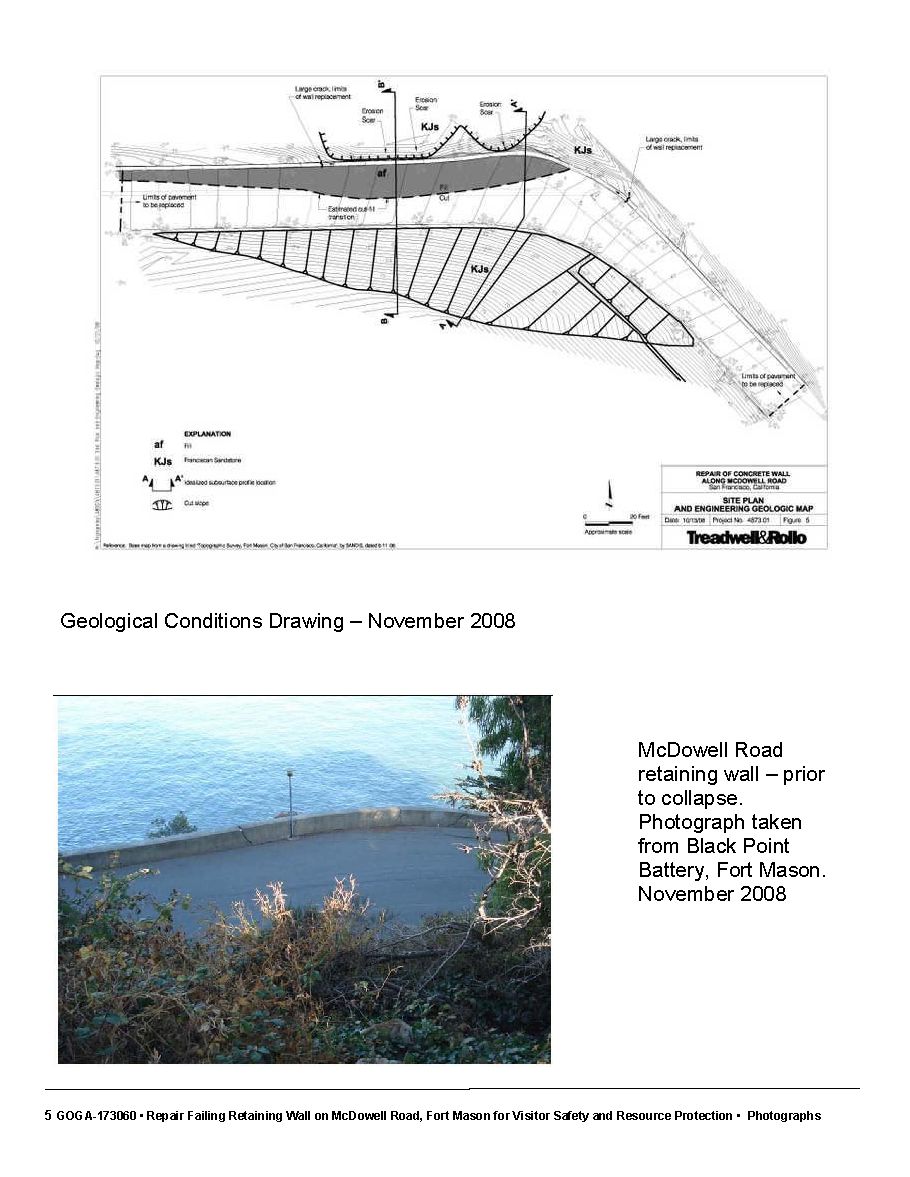 GOGA 173060 - Photographs of McDowell Rd retaining wall failure at Golden Gate National Recreation Area in March 2011