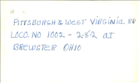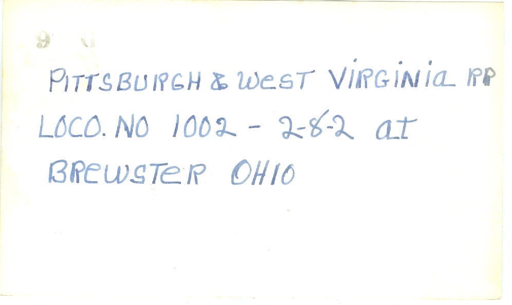 Caption: Pittsburgh and West Virginia RR loco no 1002-2-8-2 at Brewster Ohio