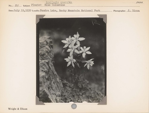 Plants--Blue Columbine (Aquilegia caerulea). Locality: Poudre Lake, Rocky Mountain National Park. Negative #: 1444