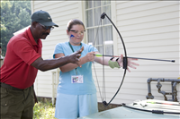 Cuyahoga Valley National Park (CVNP) and Cuyahoga Valley National Park Association present Get Up, Get Out & Go!, a campaign introducing recreational opportunities along the Ohio & Erie Canal Towpath Trail in Akron and the national park. The program targets residents in the urban neighborhoods surrounding the Towpath Trail in Akron which is a part of the larger Ohio & Erie Canalway, a national heritage area. Get Up, Get Out & Go! serves as an invitation for kids 11 to 14 years old and their families to give the Towpath Trail a try and to venture further along the trail into CVNP. || Youth try archery at the Get Up, Get Out, Go! kickoff event in June 2007.