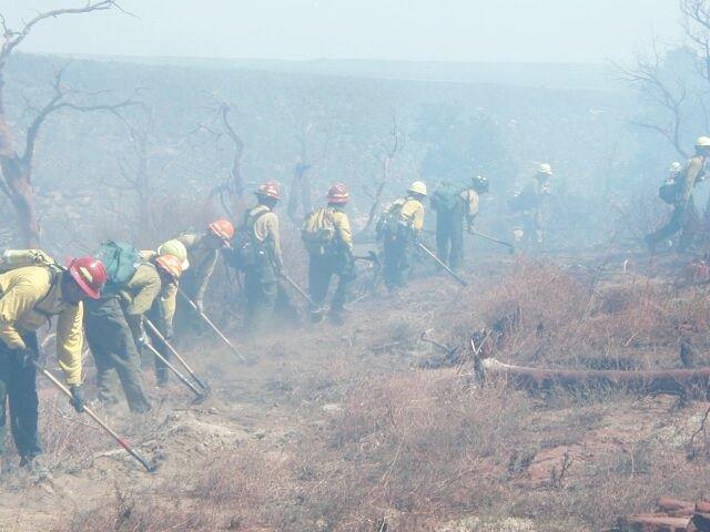 Fire fighters working on fire lines during the Long Mesa Fire, Mesa Verde National Park, July-August 2002